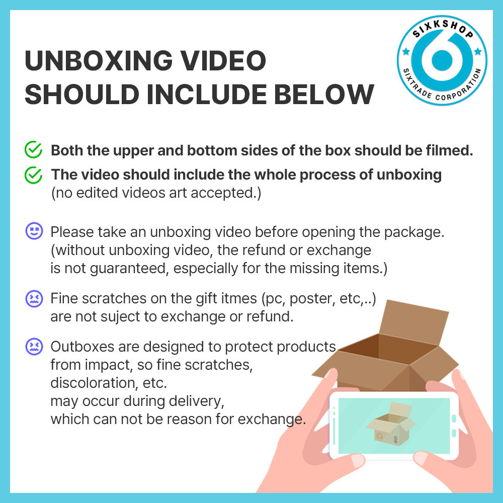 Return, Exchange & Refund 📦 Return, exchange or refund request must be made via 6Kshop customer service within 7 days of receiving. 🎥 Missing merchandise refund request must be made with a FULL LENGHTH UNEDITED...